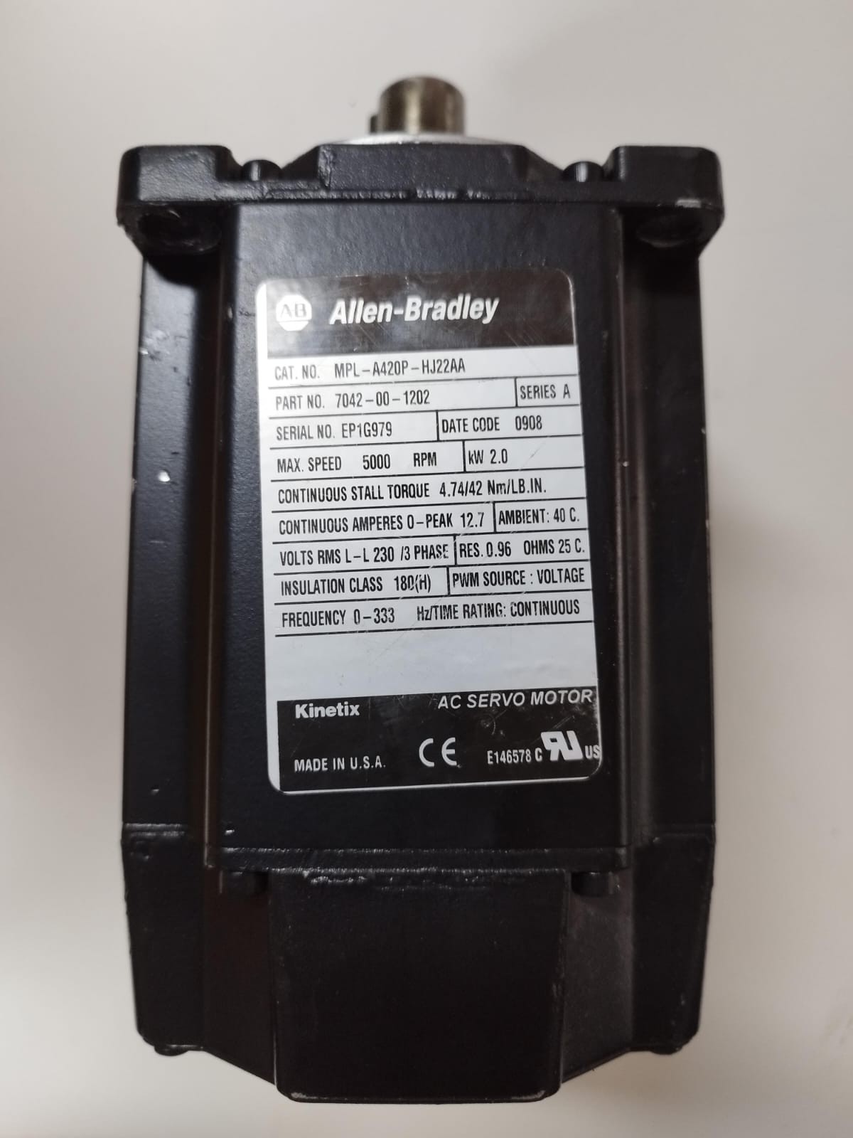 Allen-Bradley Kinetix AC Servomotor MPL-A420P-HJ22AA – 2,0 kW 5000 RPM